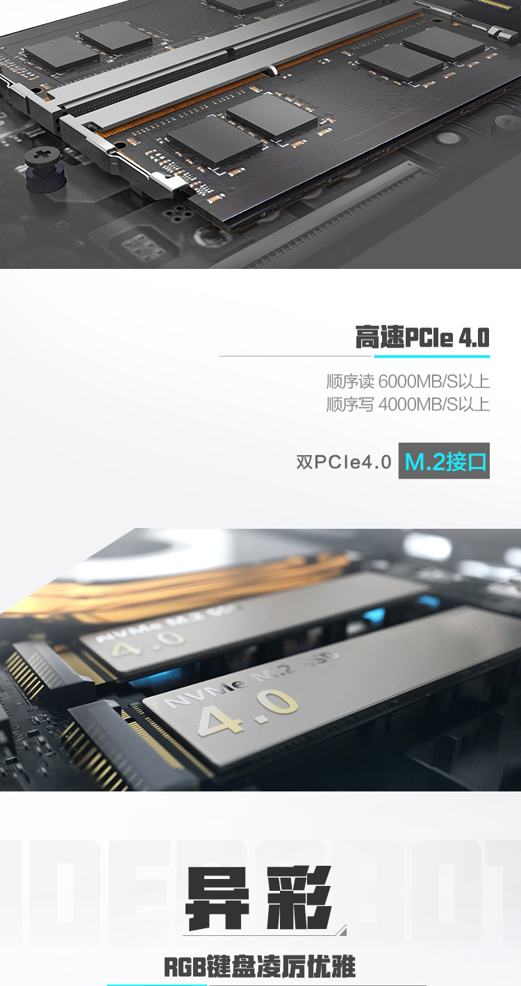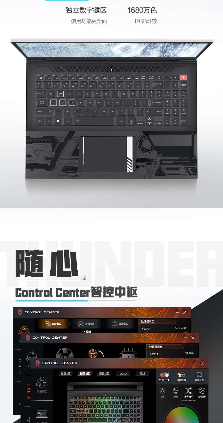 - 键盘:三区RGB背光键盘