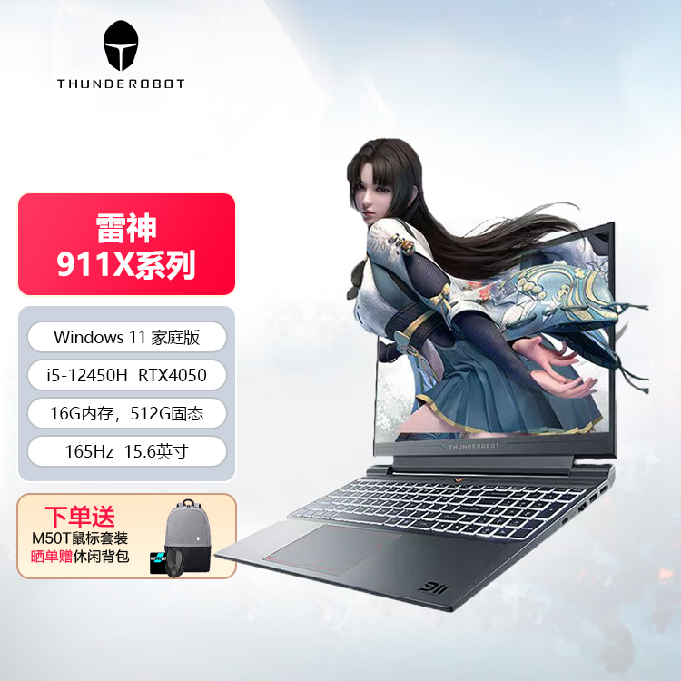 雷神911X,Windows 11 家庭版,i5-12450H,RTX4050,16G内存,512G固态,165Hz,15.6英寸高性能游戏电竞笔记本
