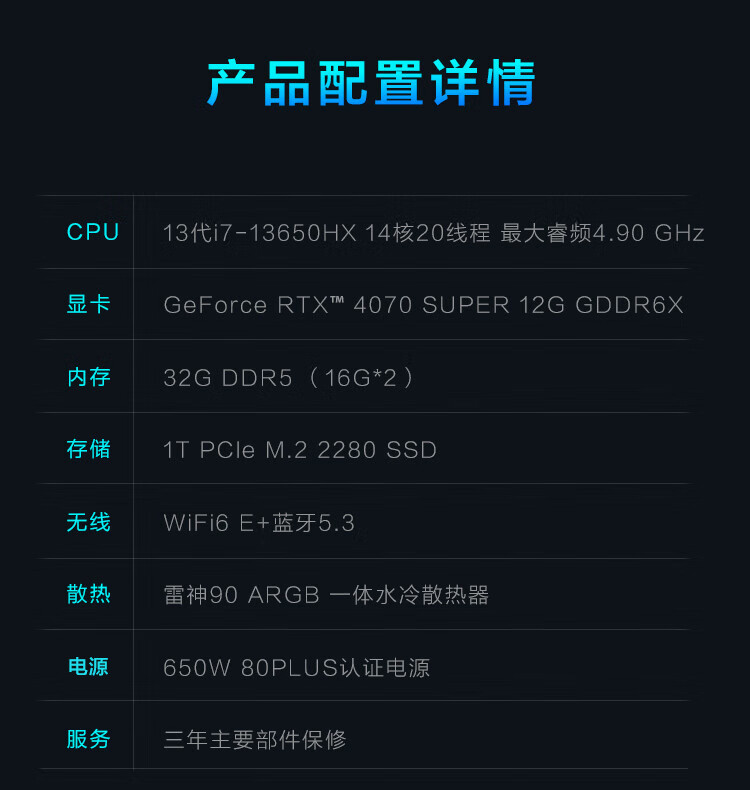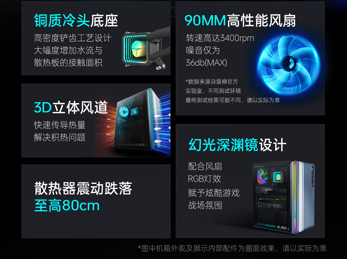 - 散热器:雷神定制90mm水冷散热