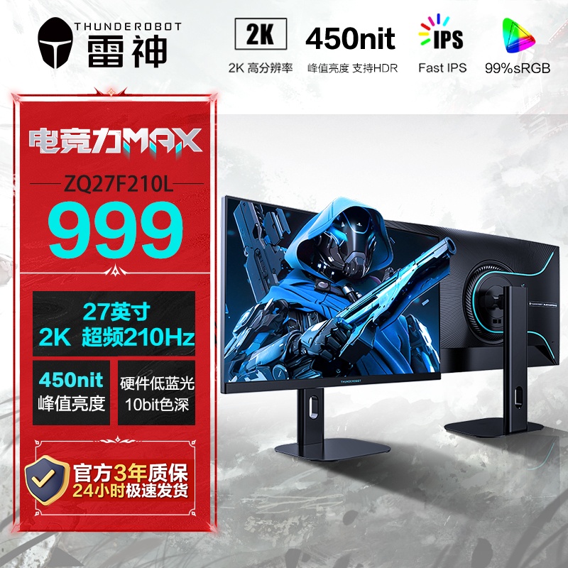 雷神黑武士显示器2K280Hz原生Fast IPS硬件低蓝光护眼 27英寸黑色