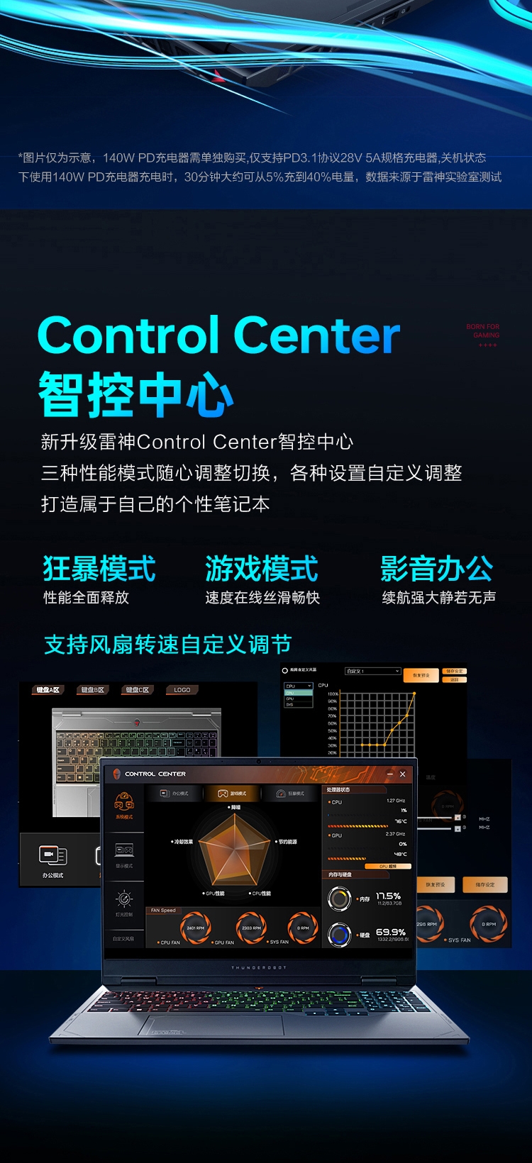 - 键盘:三区RGB