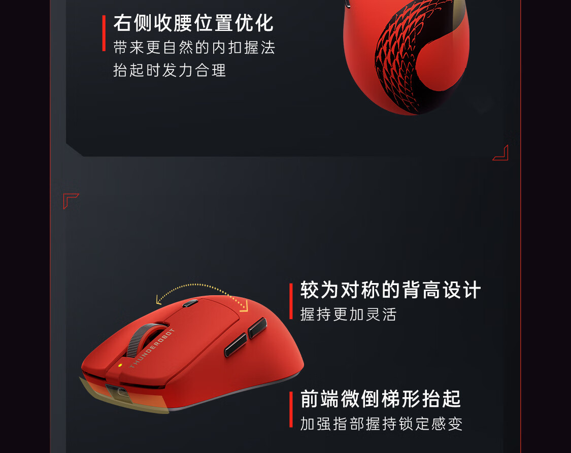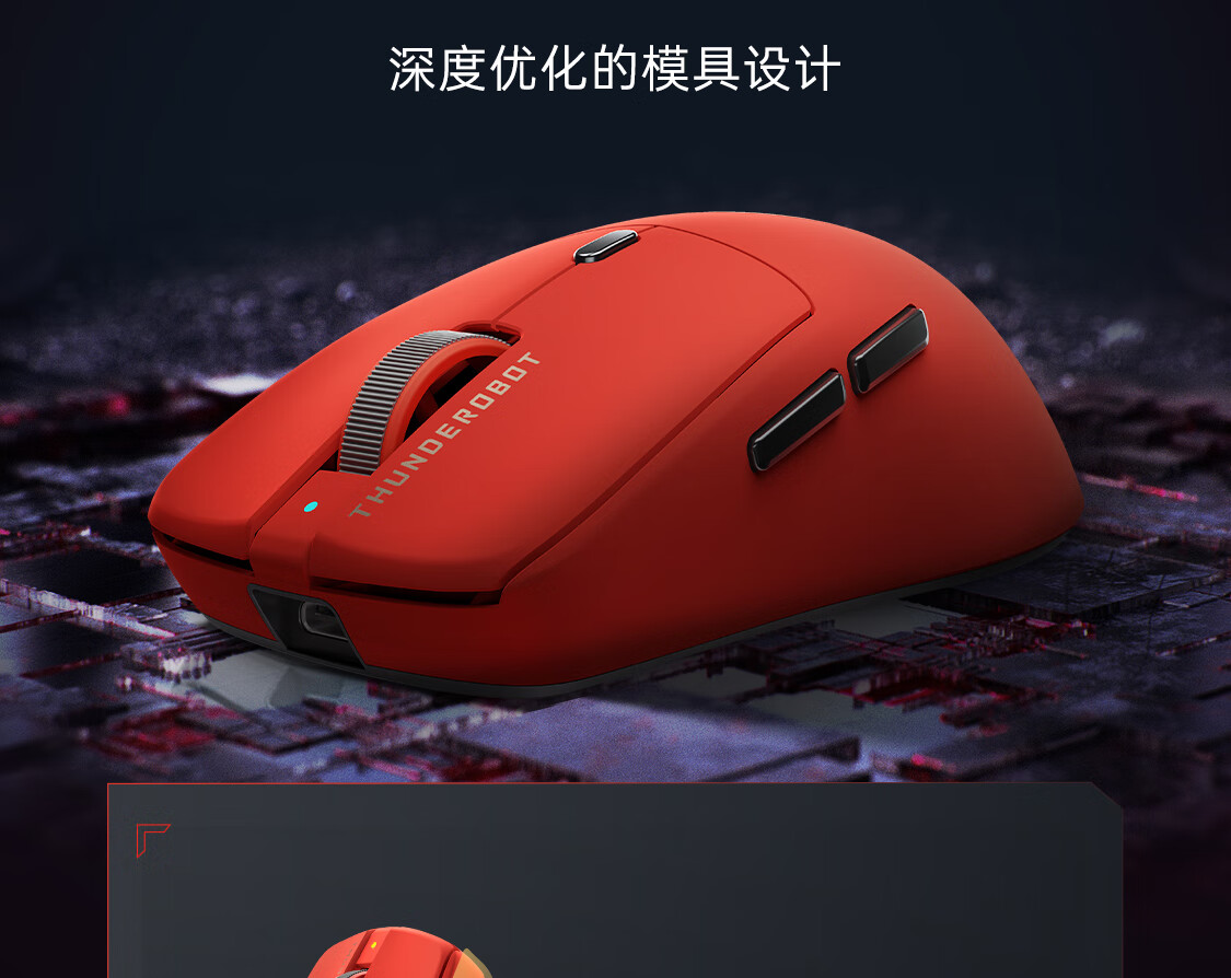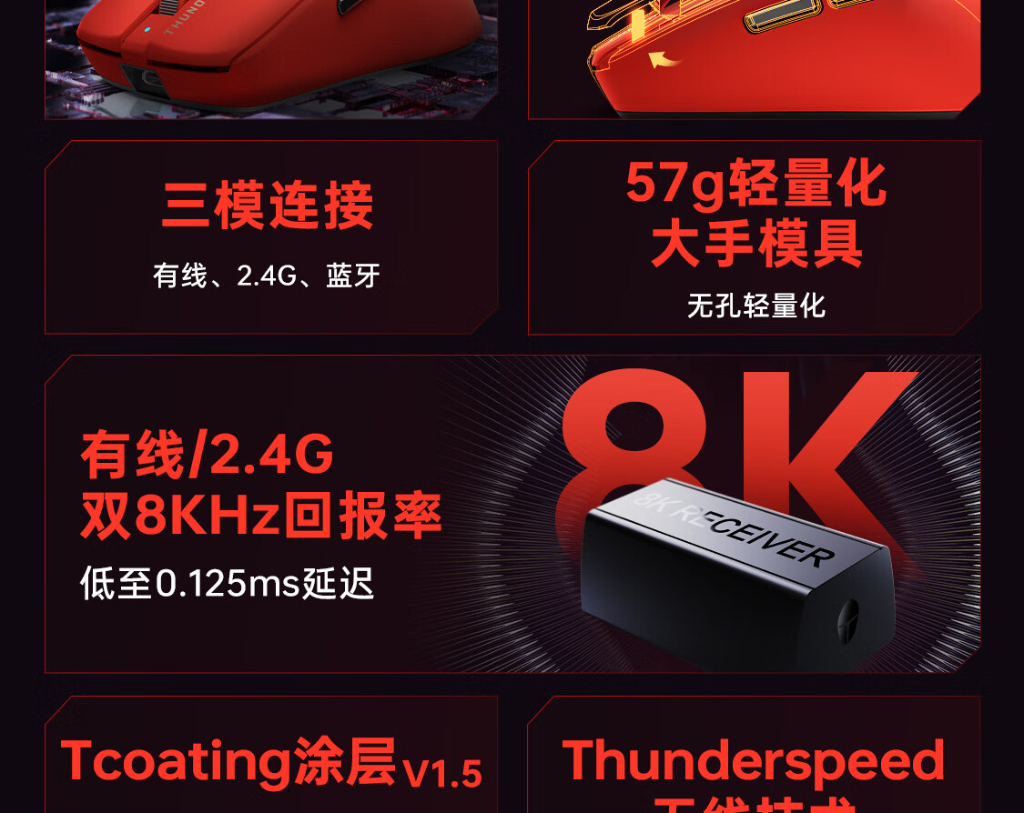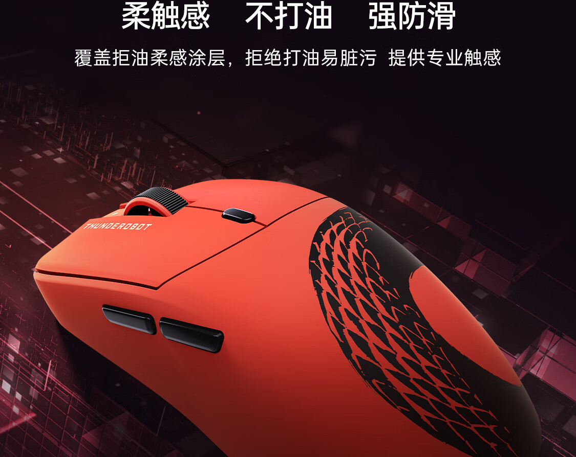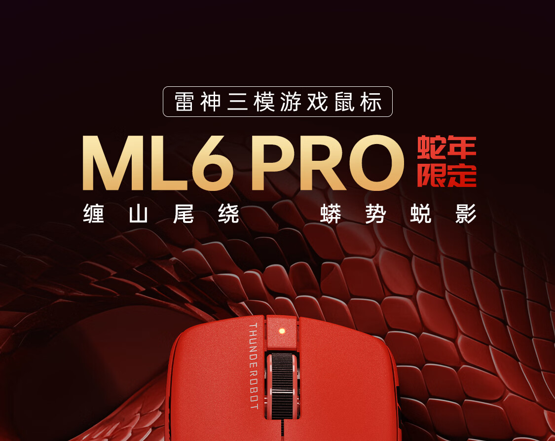 雷神(ThundeRobot)ML6PRO 8K竞技版 轻量化无线鼠标游戏电竞办公有线2.4G蓝牙三模 PAW3950人体工学中大手 蛇年红