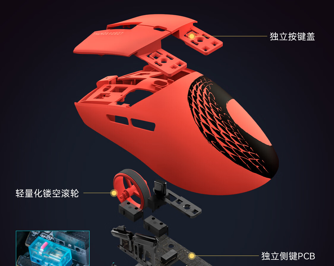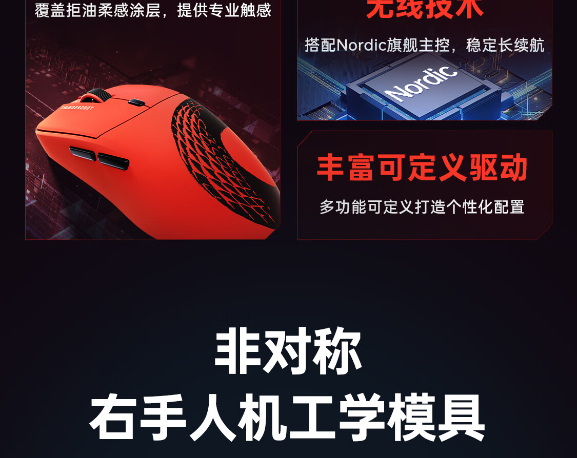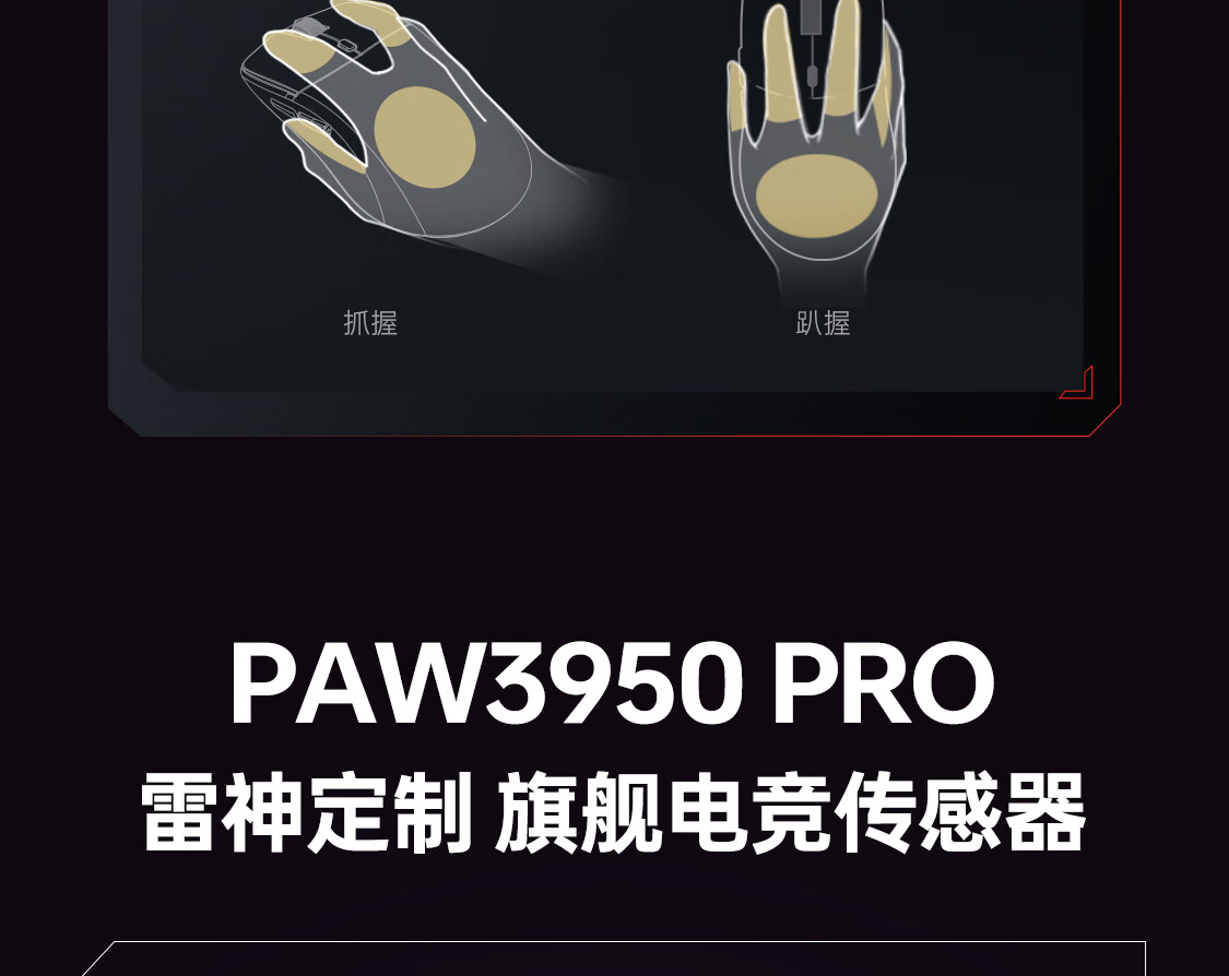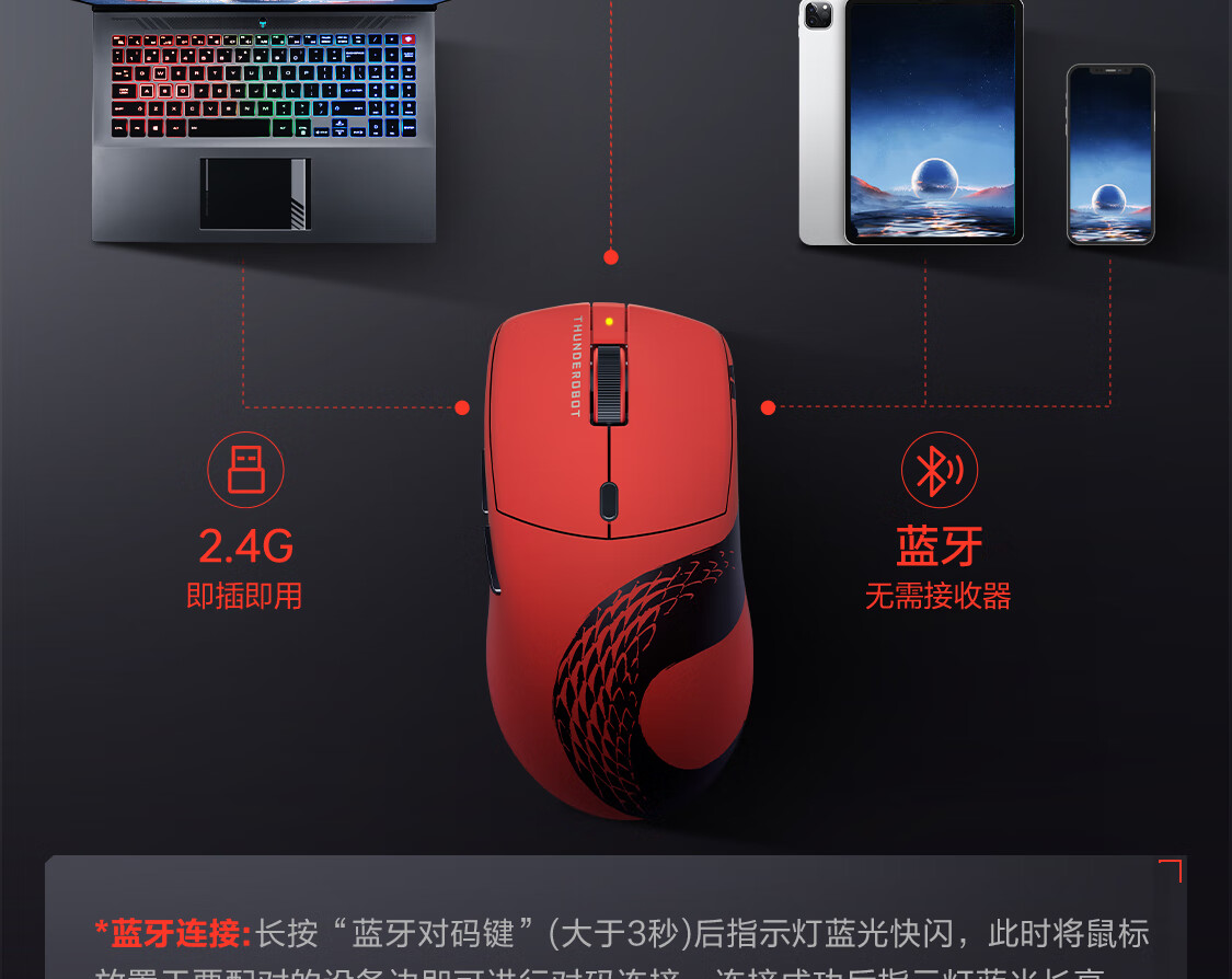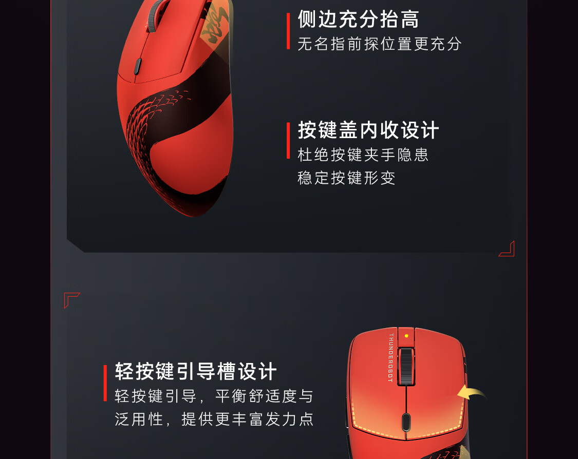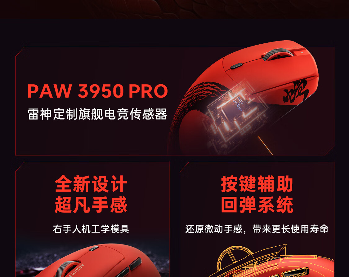 雷神(ThundeRobot)ML6PRO 8K竞技版 轻量化无线鼠标游戏电竞办公有线2.4G蓝牙三模 PAW3950人体工学中大手 蛇年红
