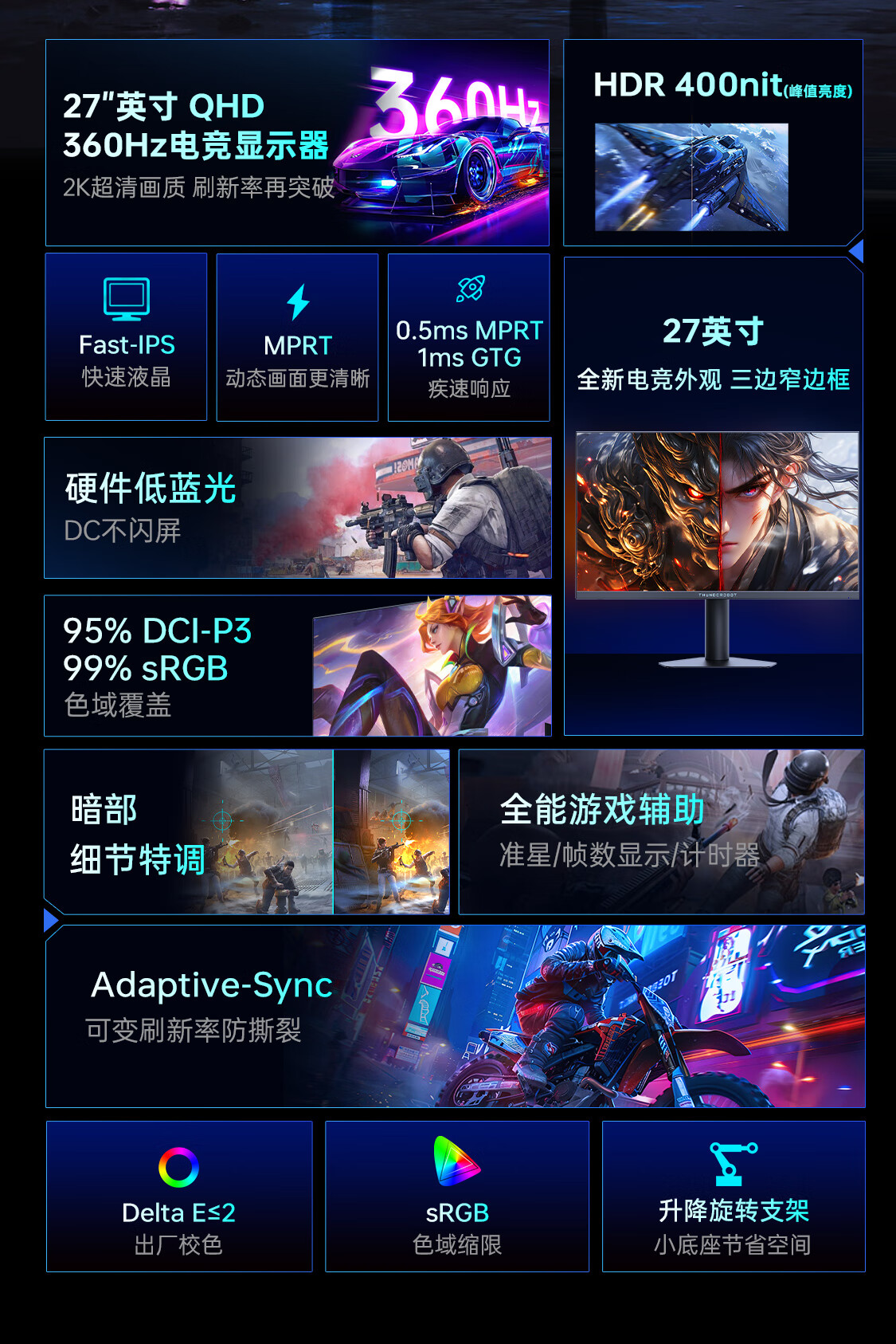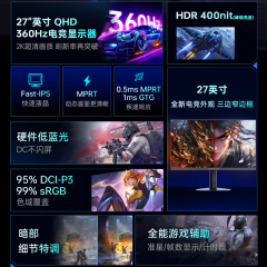 雷神显示器360Hz Fast IPS硬件低蓝光27英寸显示屏JQ27F360L