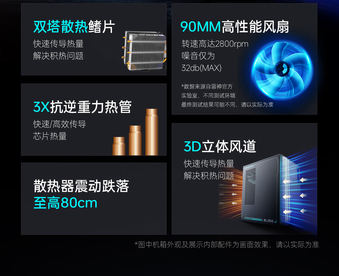 - 散热器:雷神MoDT双塔风冷散热