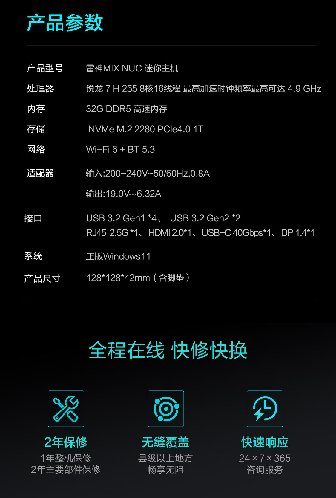 - 产品型号:雷神MIX NUC Ⅱ HPH25548