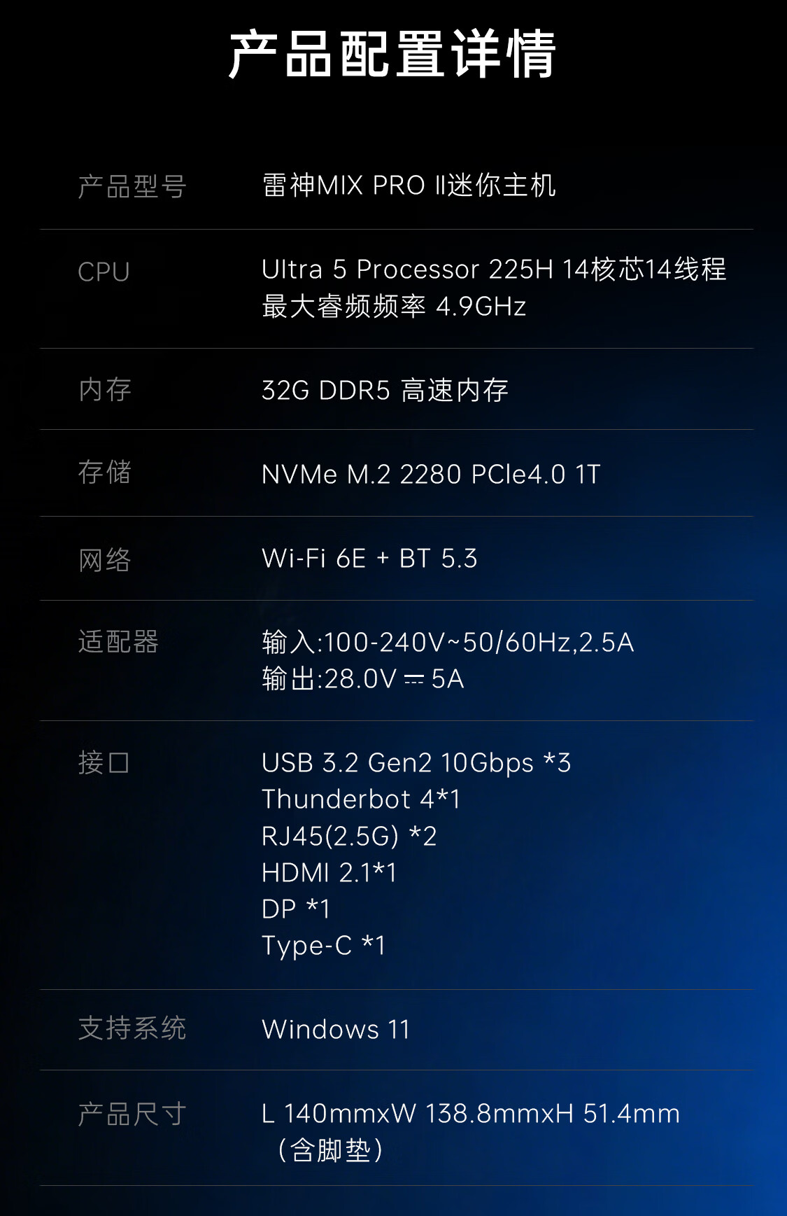 雷神MIX Pro办公迷你主机Ultra 5-225H 32G内存1TB固态游戏迷你主机