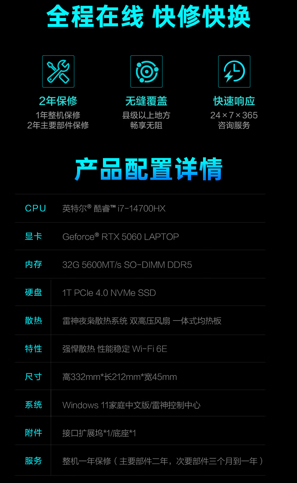 - 保修服务:整机保修1年