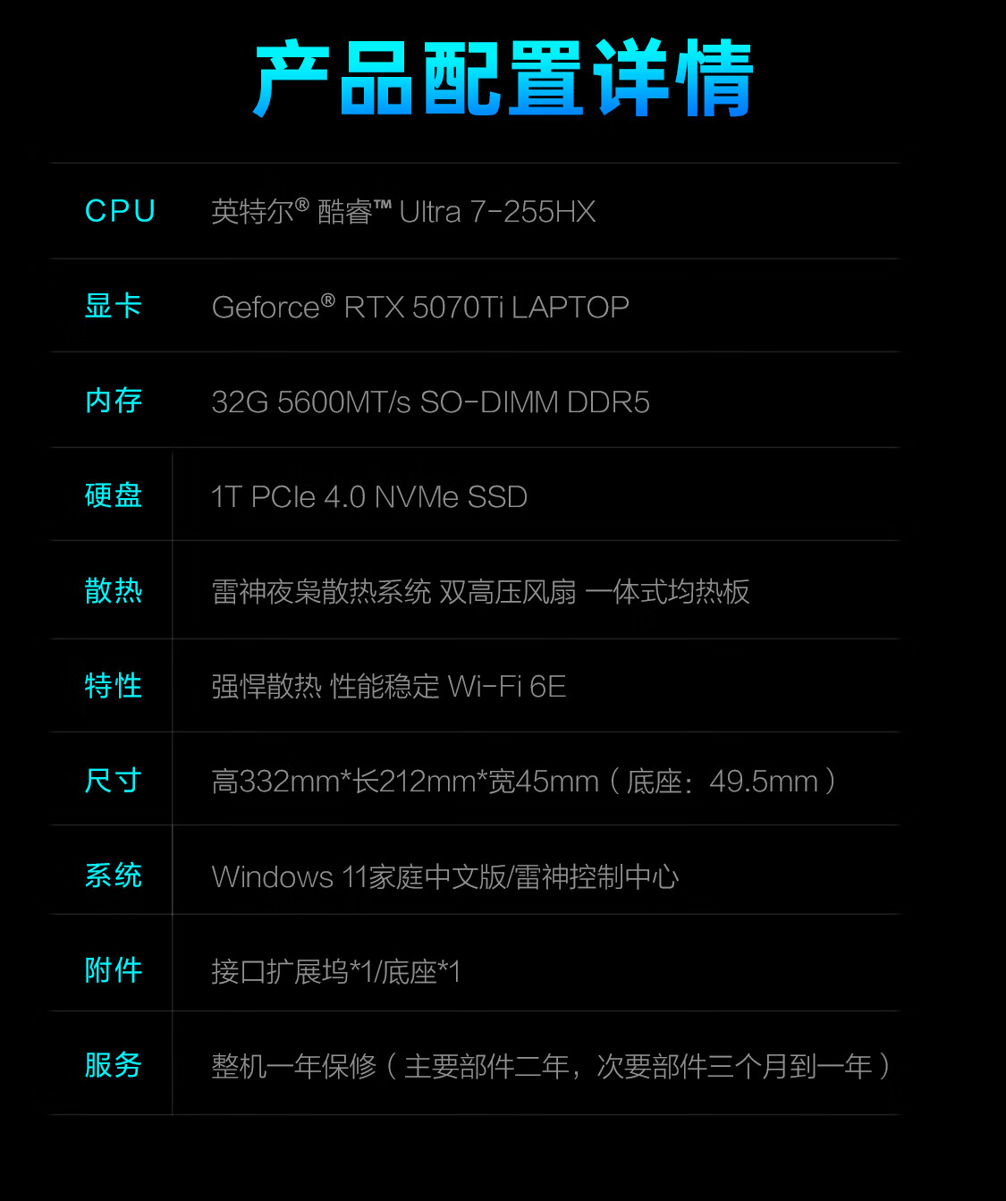 - 产品型号:雷神MIX G2AR55HXM7TLB4