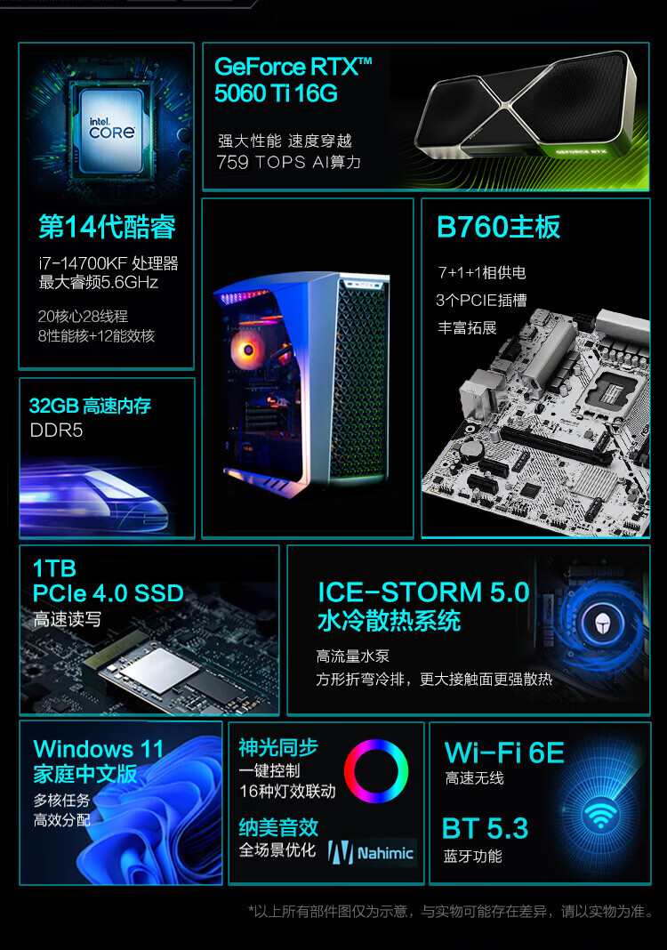 - 散热器:雷神240幻彩灯效水冷散热