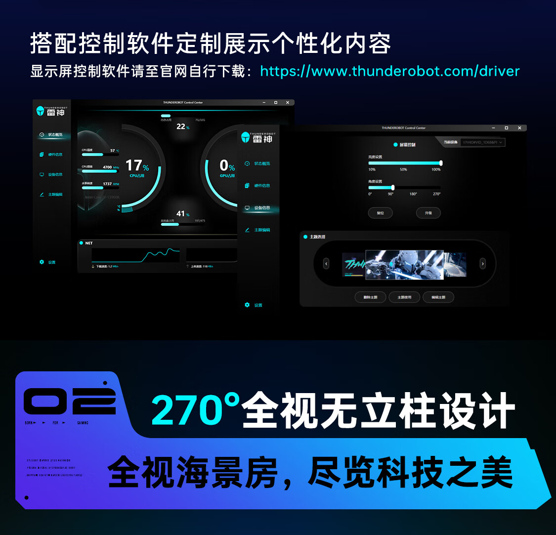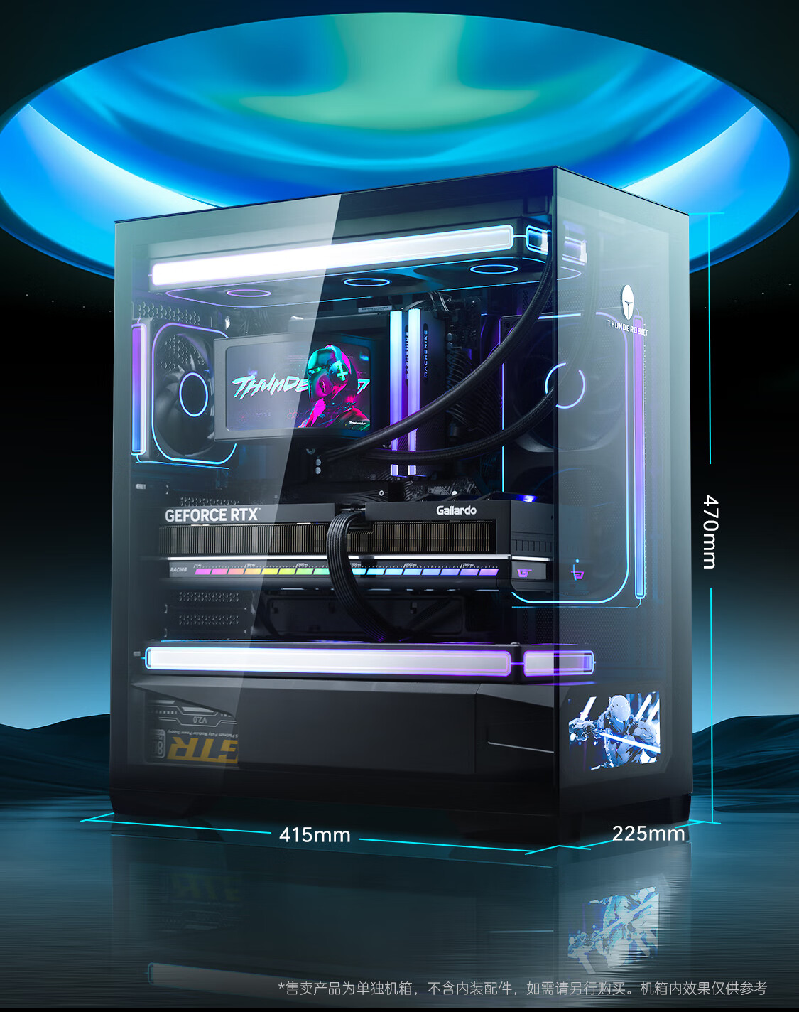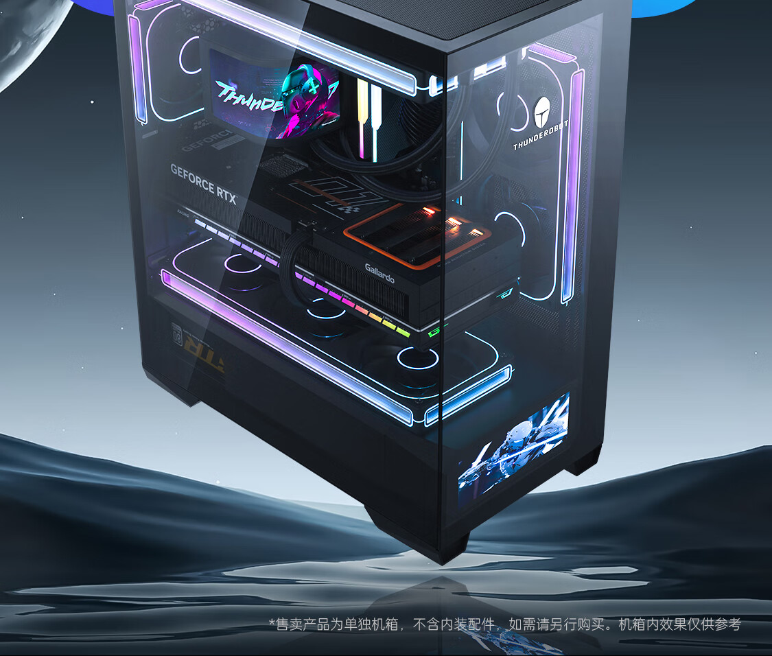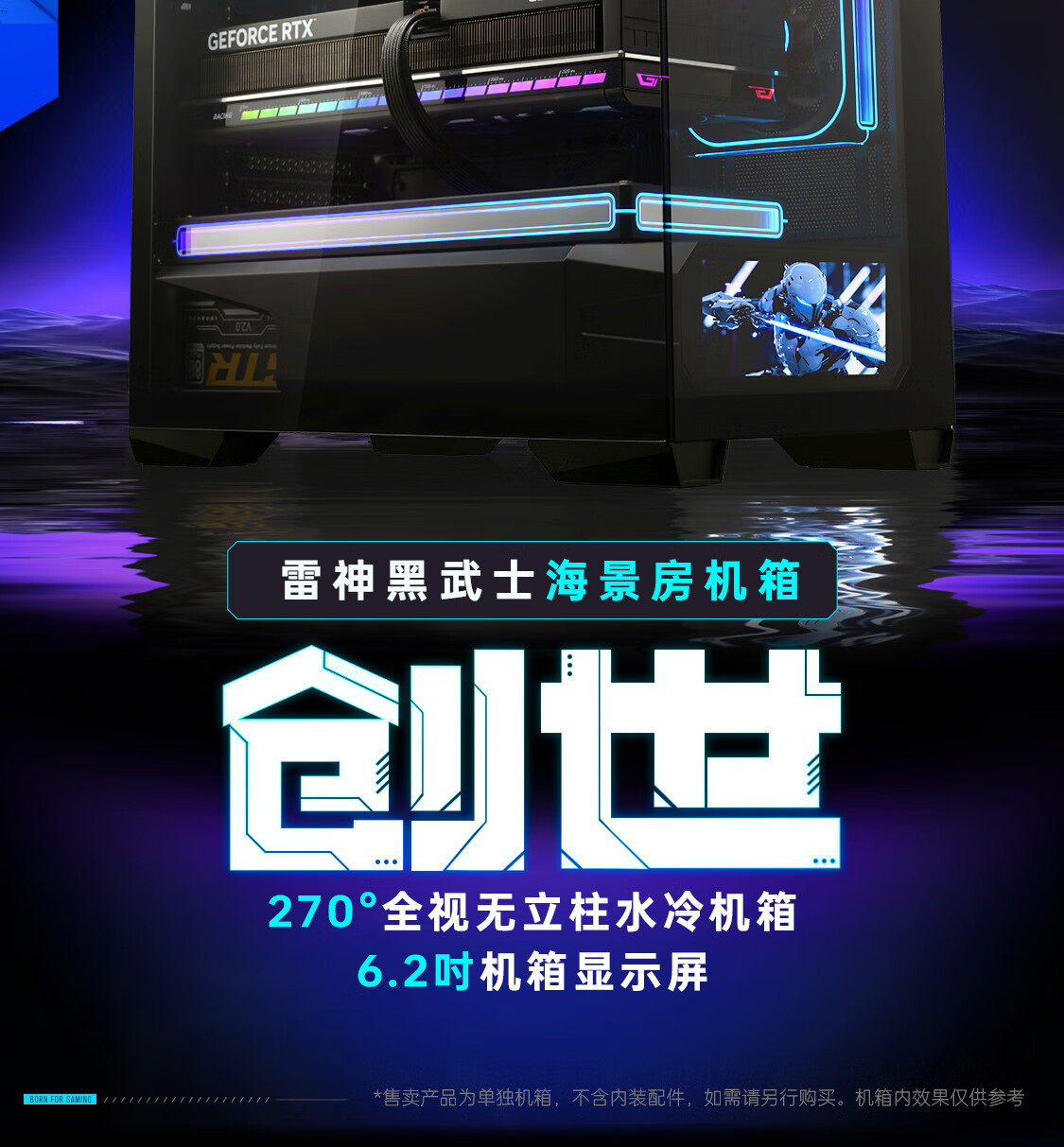 雷神黑武士创世M-ATX黑色海景房游戏机箱270°全视水冷背插主板支持快拆6.2寸屏版机箱