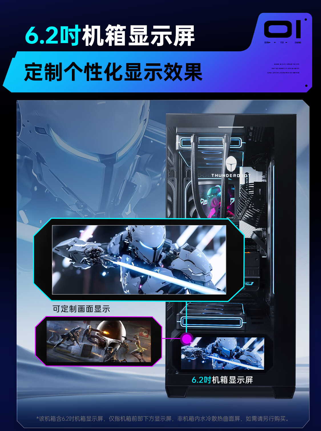 雷神黑武士创世M-ATX白色海景房游戏机箱270°全视水冷背插主板支持快拆6.2寸屏版机箱