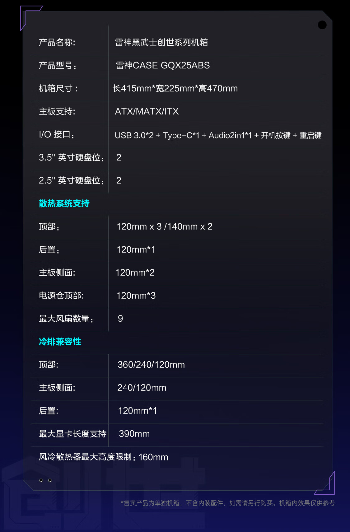 - 品牌:雷神创世 CASE GQX25ABS