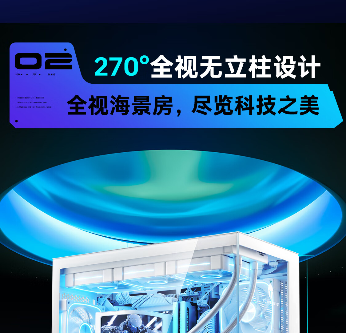 雷神黑武士创世M-ATX白色海景房游戏机箱270°全视水冷背插主板支持快拆机箱