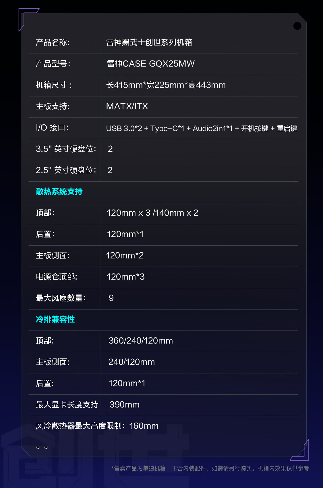 - 品牌:雷神创世 CASE GQX25MW