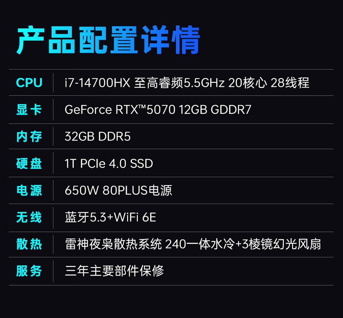 - 产品型号:雷神黑武士 LRPRPR7HXM7RB4