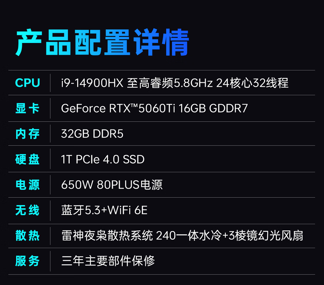 - 产品型号:雷神黑武士 LRPRPR9HXM6TRBD4