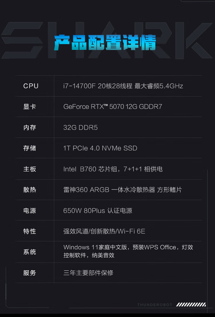 - 产品型号:雷神黑武士 5PRP7FB7RB4