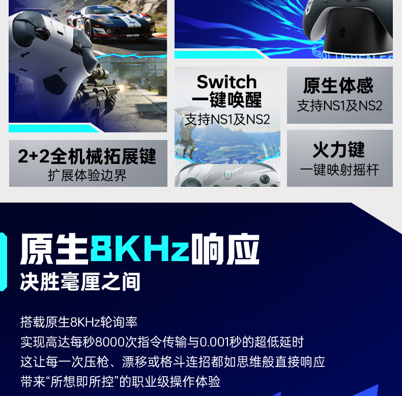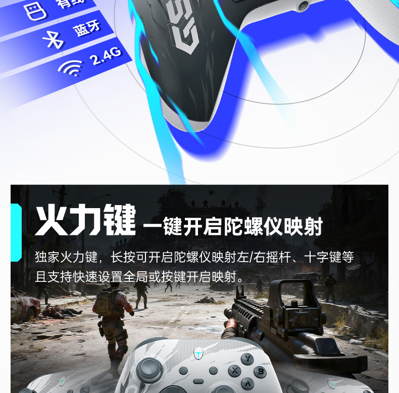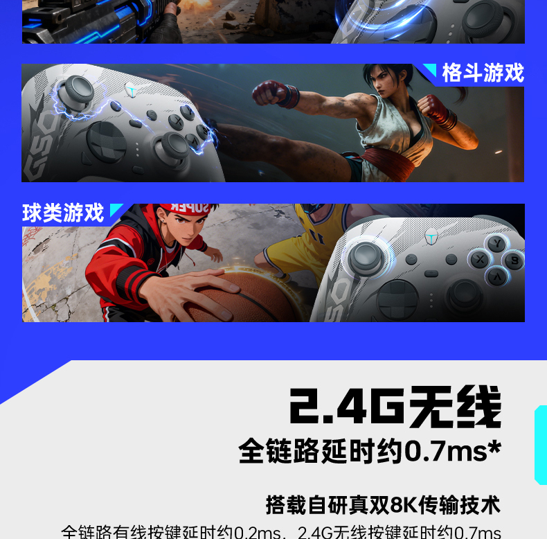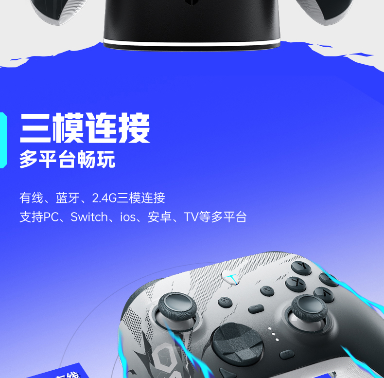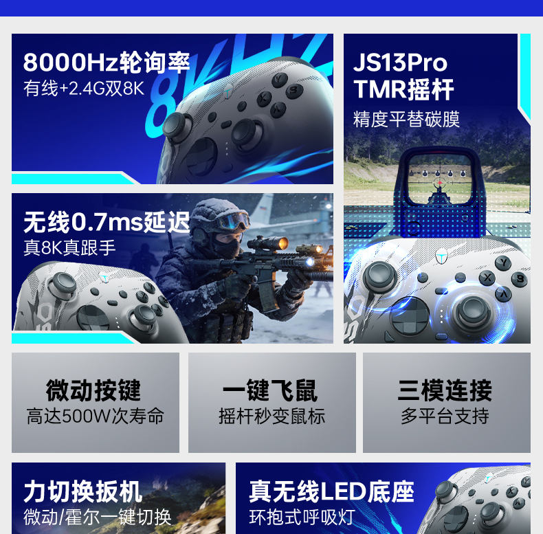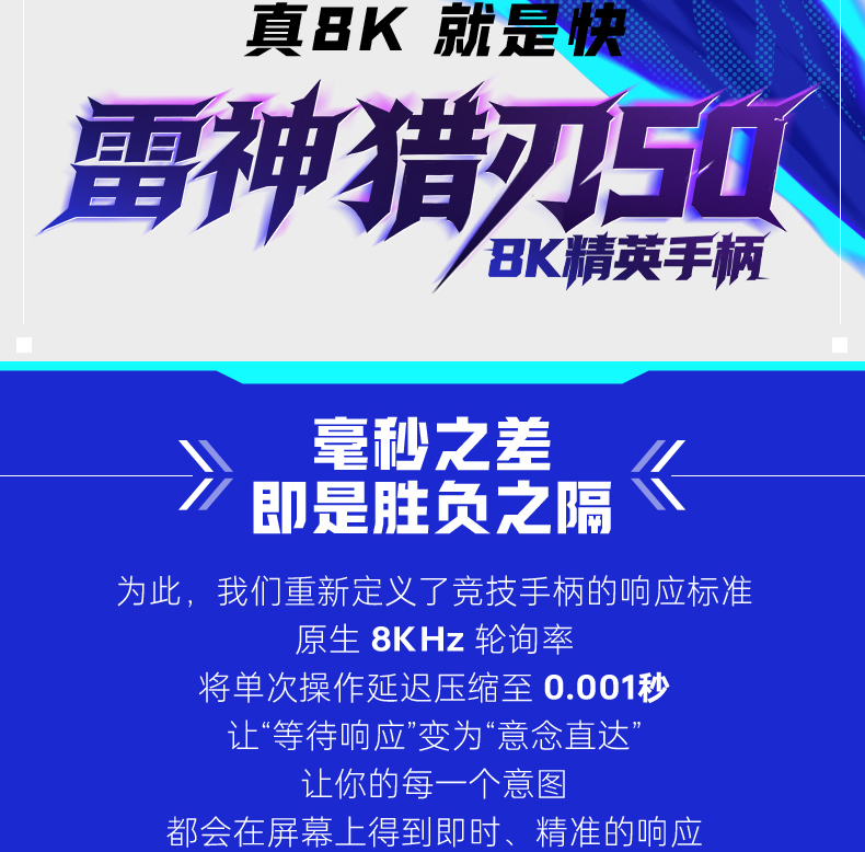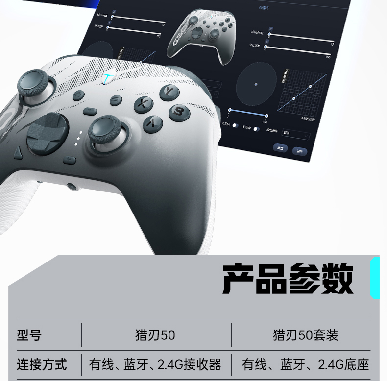 雷神猎刃50手柄三模双8K力切换扳机无线LED底座游戏手柄