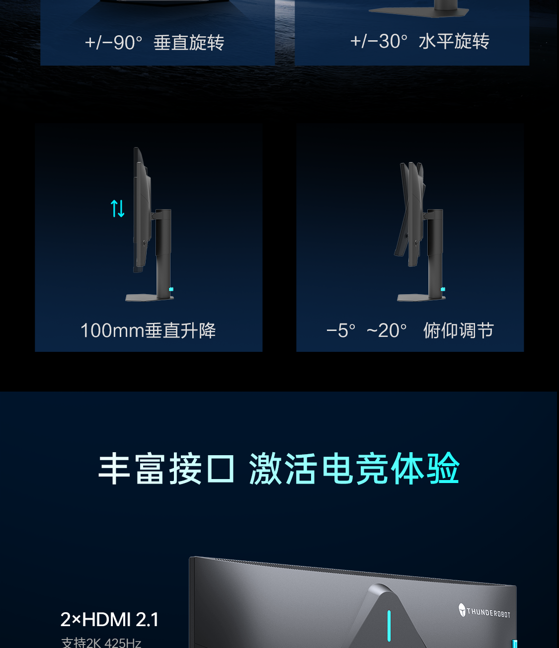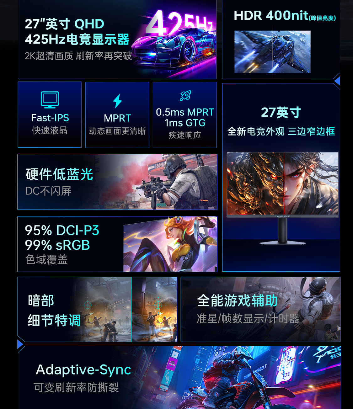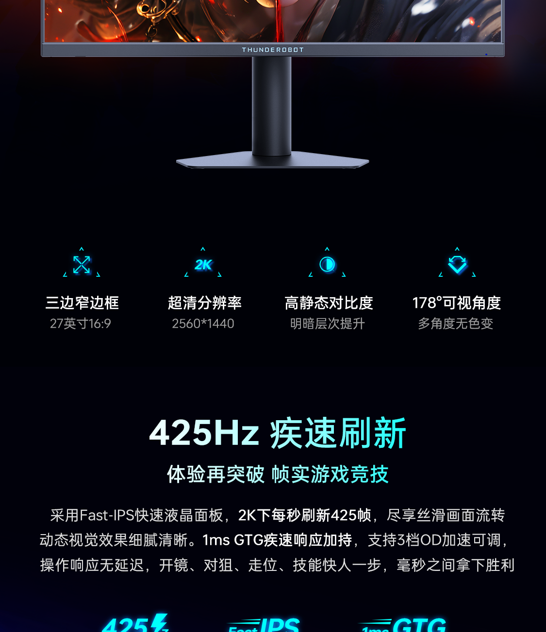雷神显示器425Hz超频Fast-IPS硬件低蓝光27英寸升降旋转显示屏JQ27F400L