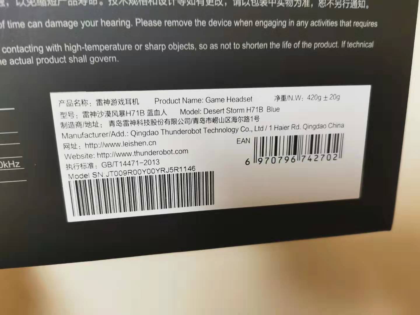 已购买 雷神H71沙漠风暴游戏耳机-蓝血人